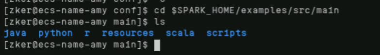 Spark自带许多示例程序,包含Scala,Java,Python和R语言的多种示例,示例程序默认存储在examples/src/main目录内首先切换目录