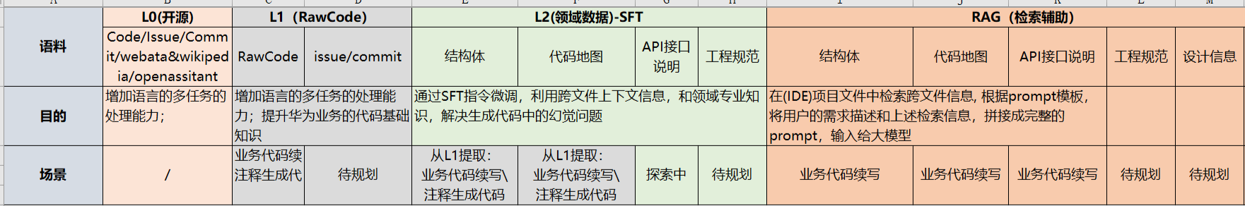 L1 RawCode 阶段:清洗华为语料库中的 30 亿 tokens,涉及公司 10 余个产品线,以增强华为业务代码的基础能力。