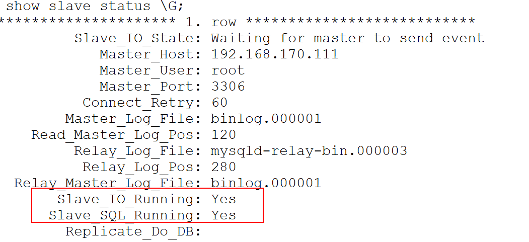 change master to master_host='192.168.170.111',master_user='root',master_password='tiger',master_log_file='binlog.000001',master_log_pos=120;