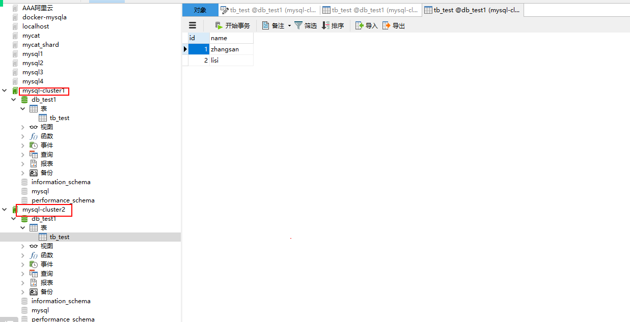 在mysql1上创建库,创建表,添加数据 发现mysql2都有