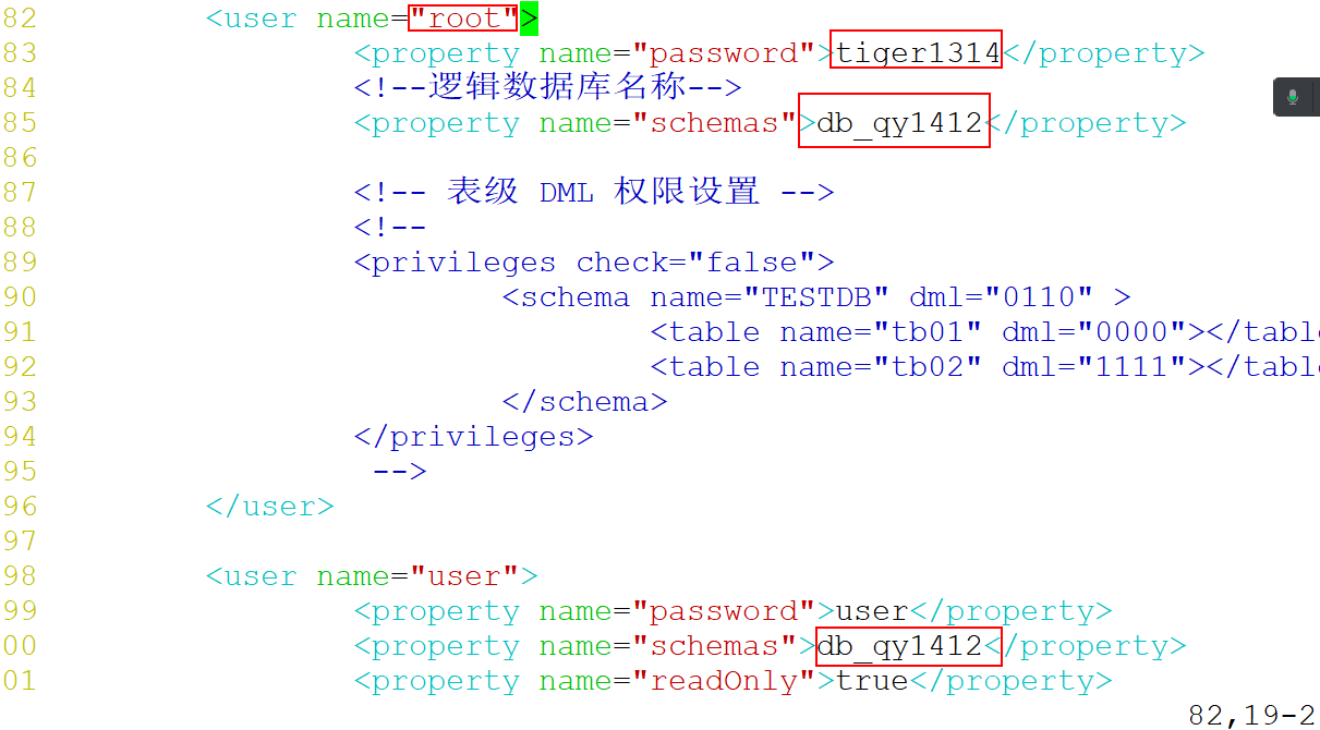 server.xml 几乎保存了所有 mycat 需要的系统配置信息(全局配置,在server.xml配置可以全局产生影响)。其在代码内直接的映射类为 SystemConfig 类。server.xml 中的标签本就不多,这个标签主要用于定义登录 mycat 的用户(密码)和权限(能问那些表,以及针对该表的访问权限)。