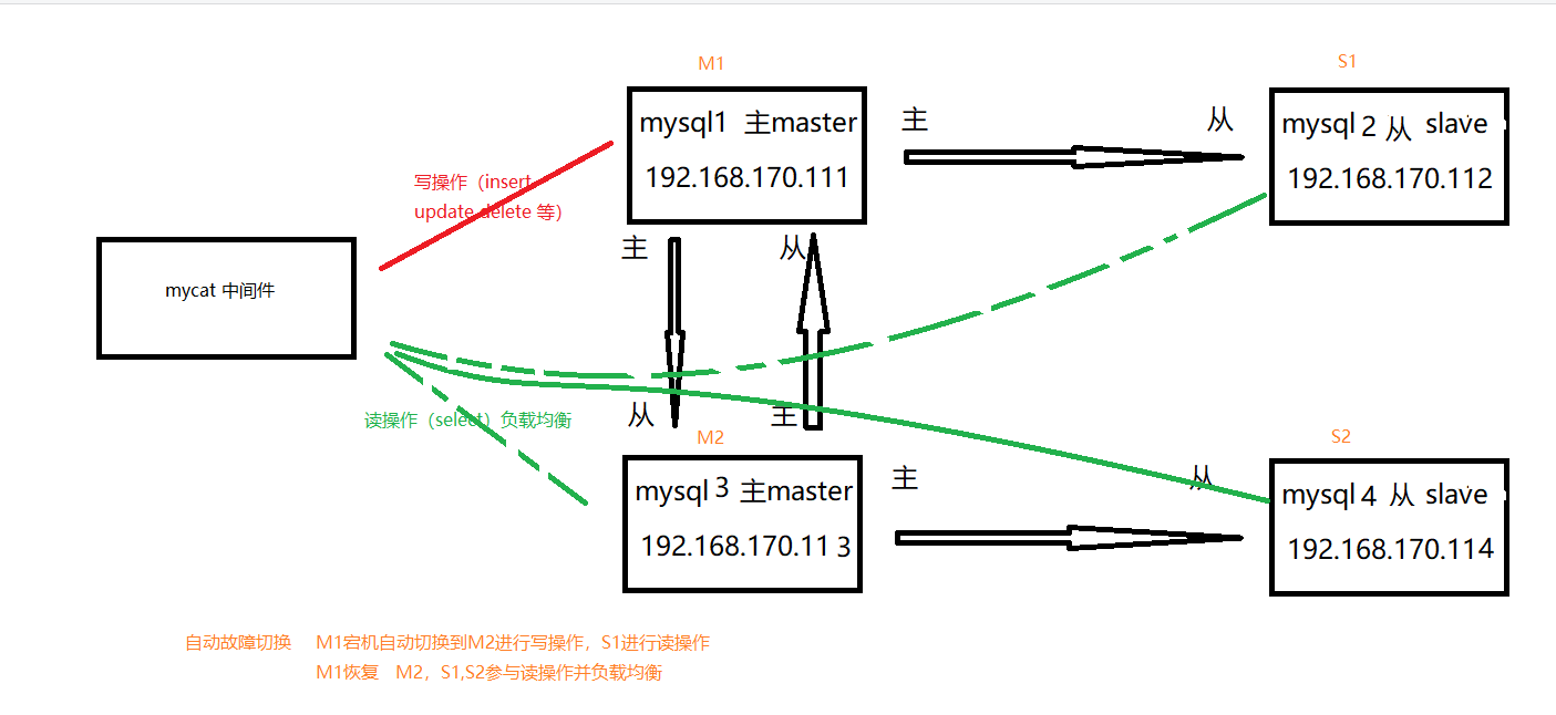让M1恢复 M2继续写,M1,S1和S2参与读的负载均衡。。。。