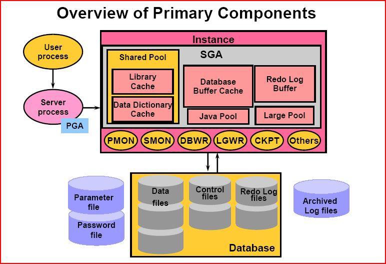 一个 Oracle 实例(Oracle Instance)有一系列的后台进程(Backguound Processes)和内存结构