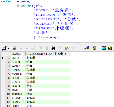 when t.job = 'CLERK' then '业务员'