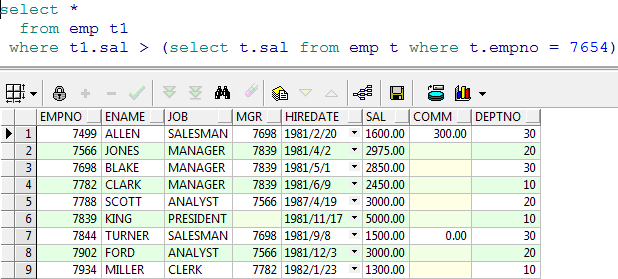 范例:查询比 7654 工资高的雇员