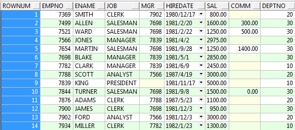 ROWNUM:表示行号,实际上此是一个列,但是这个列是一个伪列,此列可以在每张表中出现。 范例:查询 emp 表带有 rownum 列