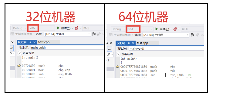 另外,经过笔者的测试,这也与编译环境有关使用不同的编译器,或者不同的环境下,我们能直观看见的都是不一样的,但是俩者都是寄存器,只是体现不同罢了