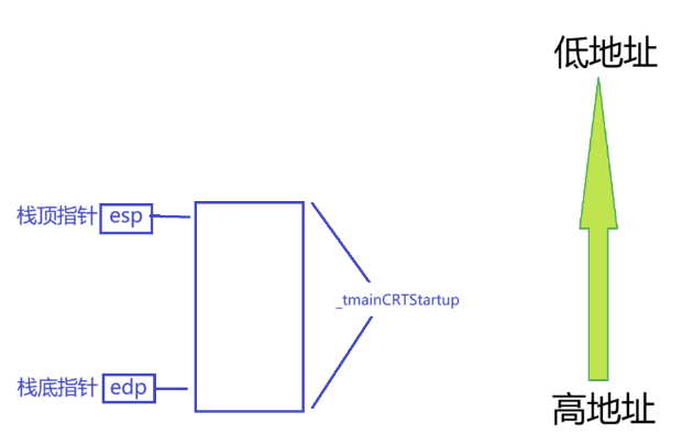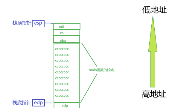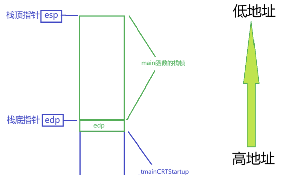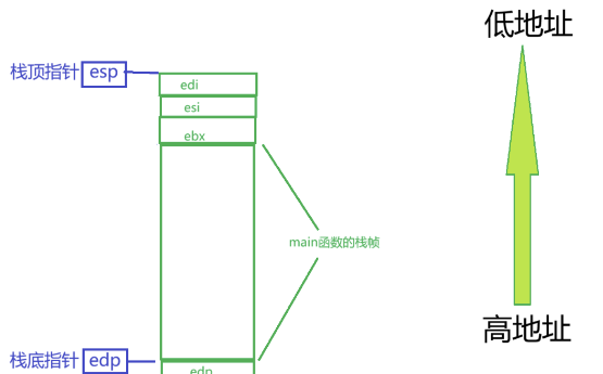 到这里,其实就已经完成了对 main 函数栈区的创建,如图所示: