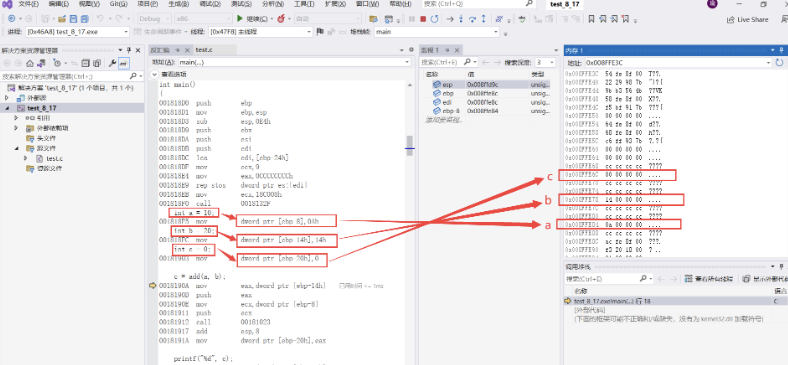 要想搞懂这个问题,我们就需要结合编译器给我们提供的反汇编代码,结合上我们写的代码进行分析