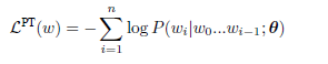 其中θ 代表模型参数。也可以基于马尔可夫假设,只使用部分过去词进行训练。预训练时通常使用随机梯度下降法进行反向传播优化该负似然函数。