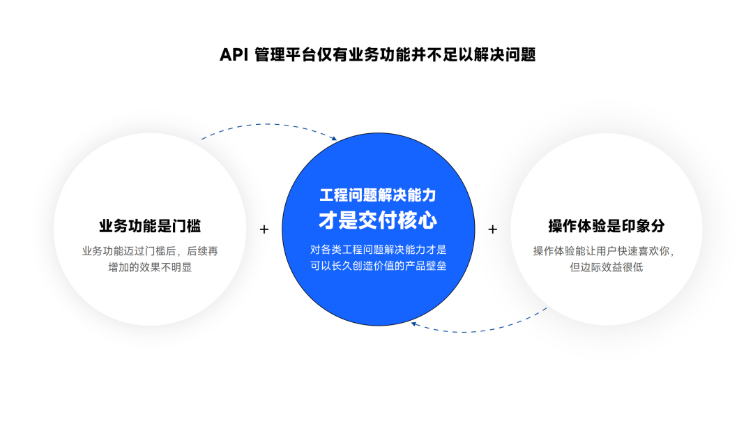 但在交付实践中我们也发现,仅建立一个提供业务能力的 API 全生命周期管理平台是远远不够的,业务功能仅是 API 全生命周期管理项目的门槛。所以我们今天主要讨论的是