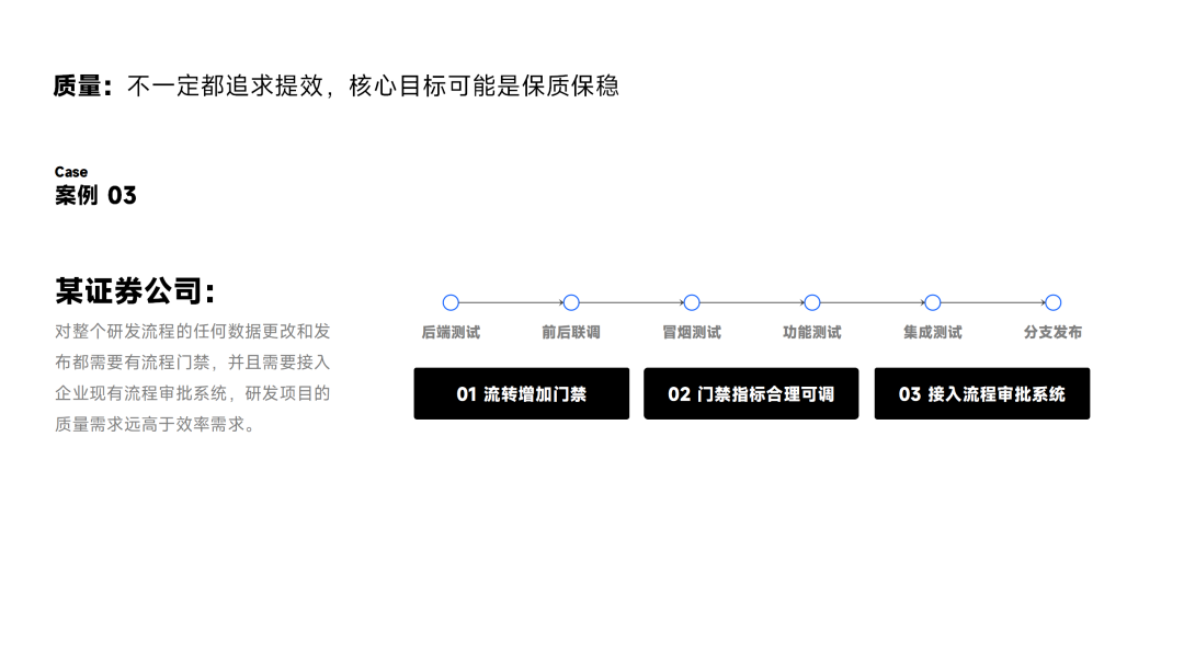 面向对接口安全和质量有着更高要求的企业,我们也提供了解决方案,即通过在关键流程中识别重要的节点(如测试节点)。在这些节点之间我们可以创建一些卡点,我们称之为“质量门禁”。