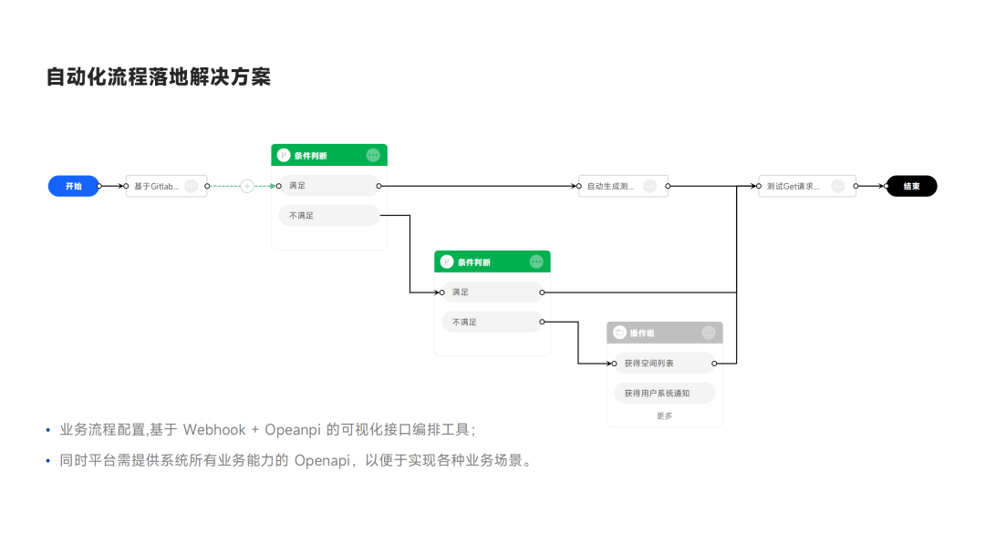 这实际上是一个流程化配置的过程。对于这些流程化的配置,我们应该在界面上提供清晰且简单的可拖拉、可点选的元素,使用户能够在界面上快速配置完成自动化流程的搭建。