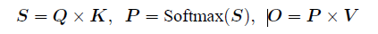 在本章第2.2 节中介绍自注意力机制的原理,在GPU 中进行计算时,传统的方法还需要引入:两个中间矩阵S 和P 并存储到全局内存中。具体计算过程如下: