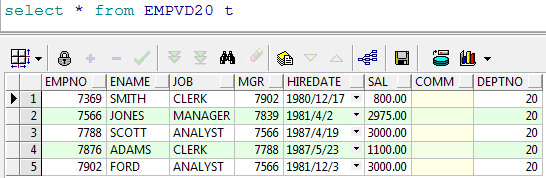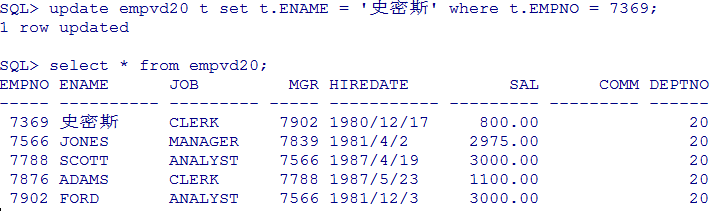 create view empvd20 as select * from emp t where t.deptno = 20 视图创建完毕就可以使用视图来查询,查询出来的都是 20 部门的员工