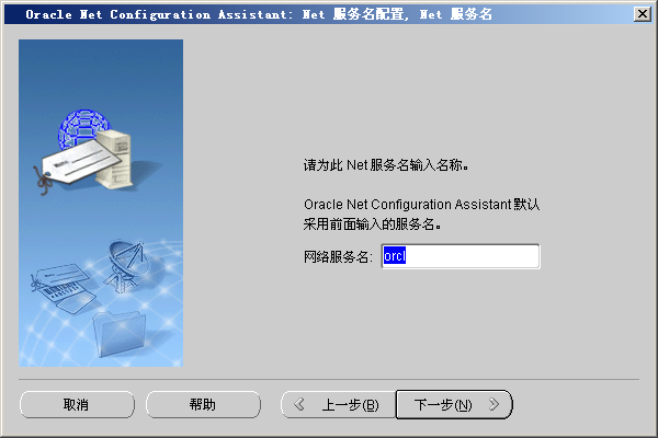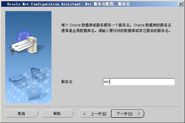3. 点击“下一步”,填写服务名,该服务名就是Oracle安装时(图1),为数据库取的全局数据库名。