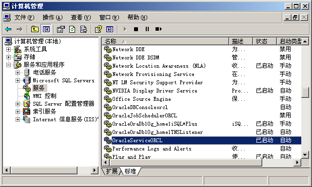Oracle在windows中安装完成后,会安装很多服务,下面介绍几个主要的服务。