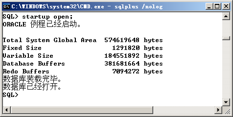 OracleService启动动后,就可以对数据库进行管理了,Oracle的启动和关闭是最基本的命令,在SQL*Plus中,启动Oracle必须是sys用户,命令格式是: