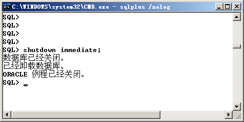 Oracle服务关闭用命令:shutdown immediate