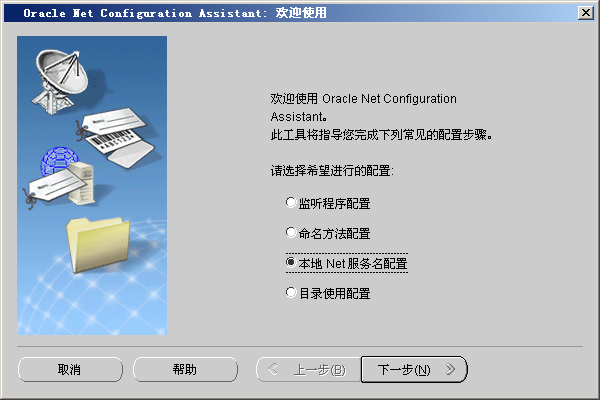 本地网络服务名,即客户端与服务器的连接字符串,本地网络服务名是客户端的配置,Oracle客户端安装后,可以使用客户端自带的网络配置向导(Net Configuration Assistant)进行配置: