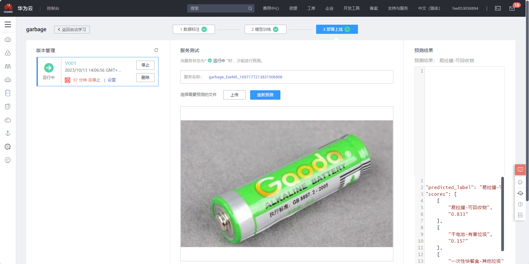 【摘要】 华为云自动学习之垃圾分类 实践分享使用的平台/技术华为云ModelArts华为云自动学习平台图像分类实验准备1. 实验数据训练集:40张垃圾图片,包括可回收垃圾、其他垃圾、厨余垃圾、有害垃圾,每类各10张。2. 创建obs桶在服务列表中找到“对象存储服务”,进入OBS控制台。点击创建桶,自拟一个桶名字,其他保持默认即可。进入刚创建的桶,依次点击“对象”-“新建文件夹”,分别创建data和ou...