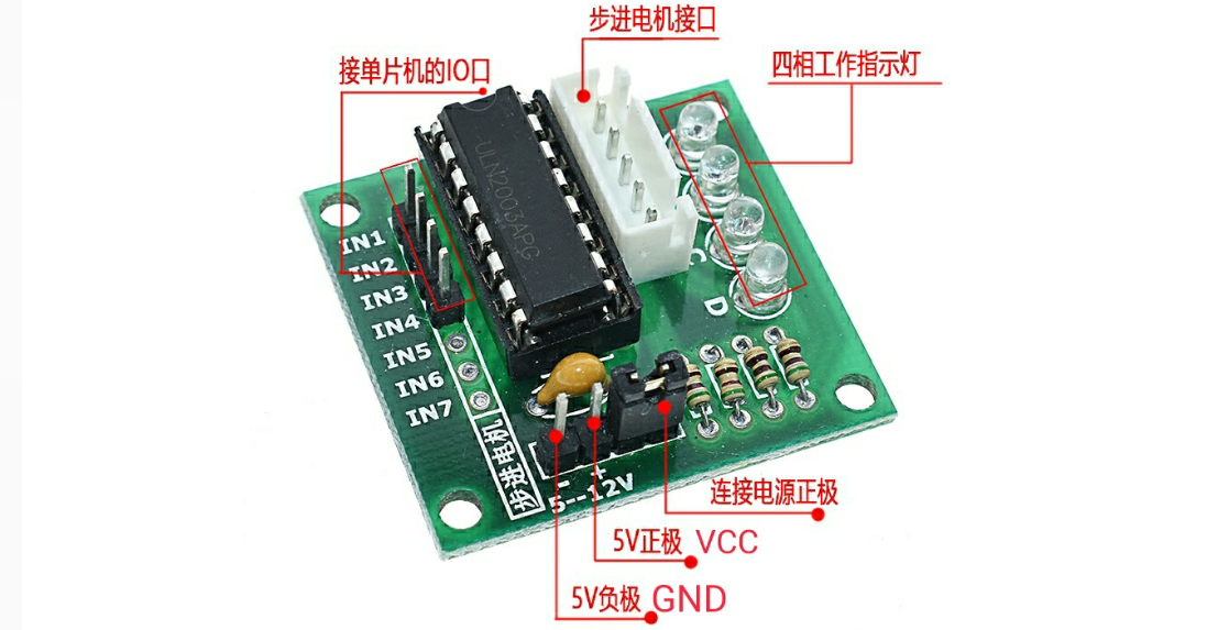 - 驱动电路:使用ULN2003芯片来驱动步进电机。
