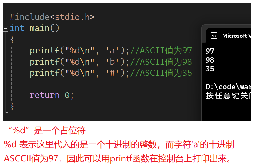 %d表示打印整型,\n表示换行
