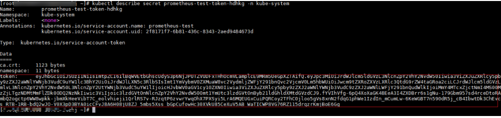 1.21以前版本的集群中,Pod中获取Token的形式是通过挂载ServiceAccount的Secret来获取Token,这种方式获得的Token是永久的。该方式在1.21及以上的版本中不再推荐使用,并且根据社区版本迭代策略,在1.25及以上版本的集群中,ServiceAccount将不会自动创建对应的Secret。可参考kubernetes官方提供的如何创建长期token: https://kubernetes.io/zh-cn/docs/tasks/configure-pod-container/configure-service-account/#manually-create-an-api-token-for-a-serviceaccount
