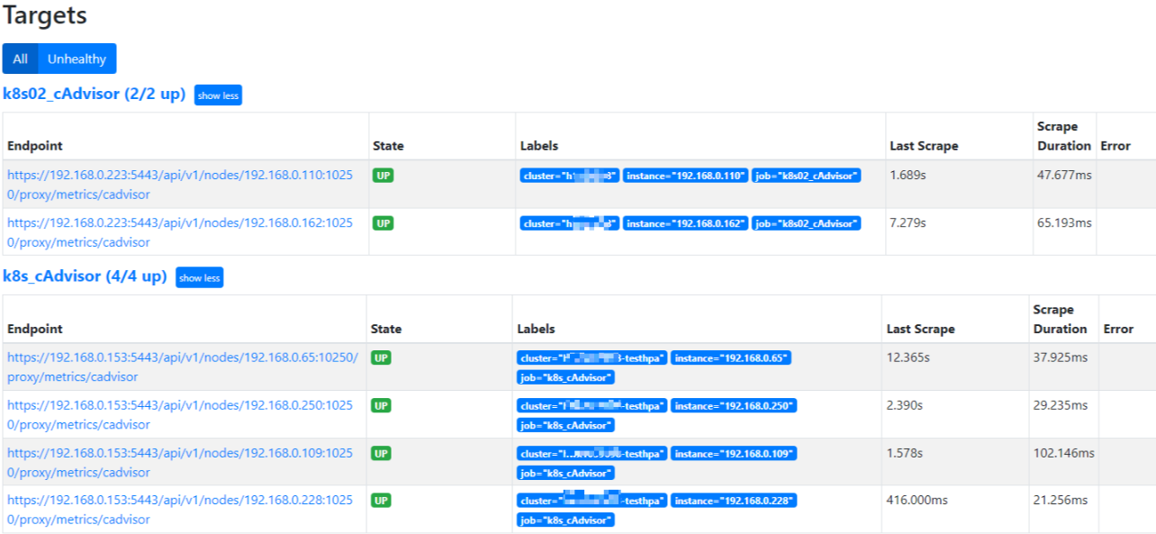 - 通过APIServer代理的方式获取k8s集群指标,直接在prometheus.yml配置相关其他kubernetes集群信息,实现一个prometheus同时采集多个kubernetes集群信息