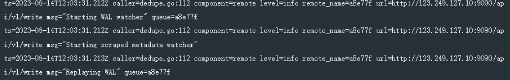- 查看kube-prometheus-stack agent日志,确认remote write成功