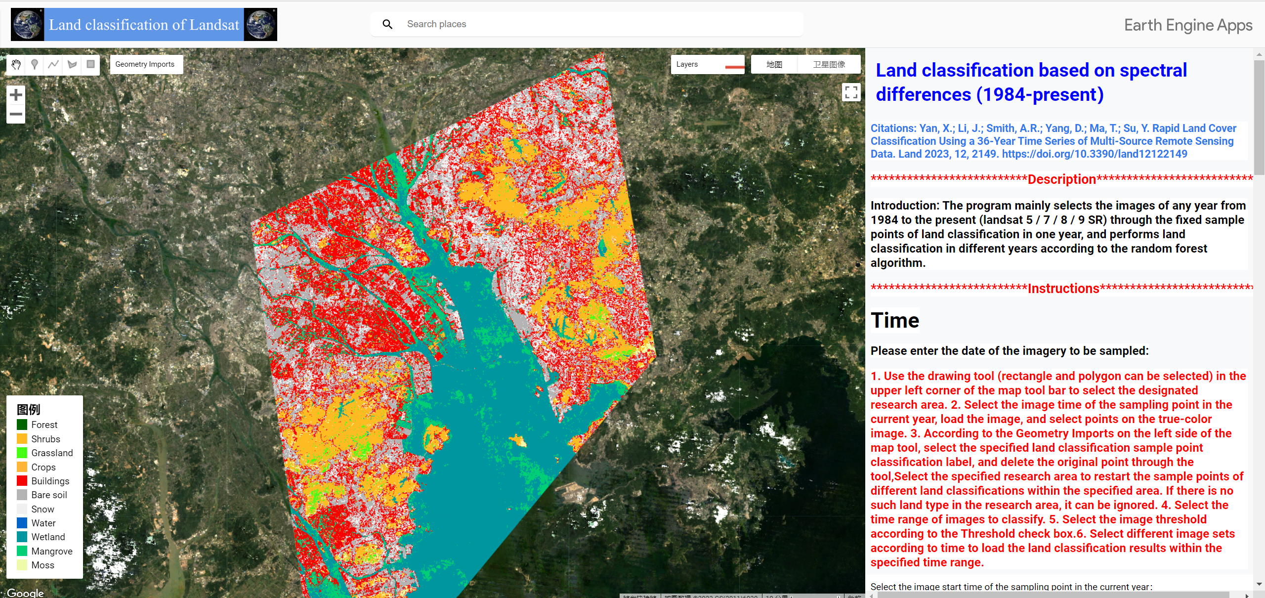 最近我新发表了一篇新的文章,也就是利用样本点迁移的方法来快速实现全球长时序快速土地分类,本文发布了应用APP,用户可以在线体验使用快速分类的效果。原文链接:Land | Free Full-Text | Rapid Land Cover Classification Using a 36-Year Time Series of Multi-Source Remote Sensing Data