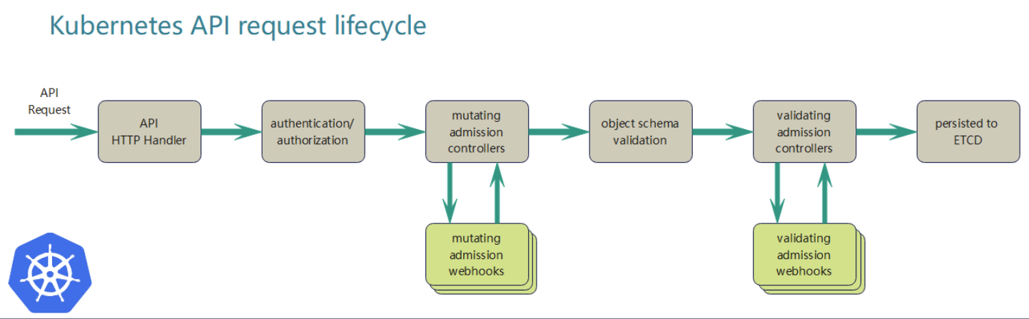 Admission webhook是K8S对请求资源对象的准入控制,Admission webhook有两种控制机制MutatingAdmissionWebhook和 ValidatingAdmissionWebhook,这两个控制器将发送准入请求的 HTTP 回调服务并接收一个准入响应。准入控制器是在对象持久化之前用于对 Kubernetes API Server 的请求进行拦截的代码段,在请求经过身份验证和授权之后放行通过。准入控制器可能正在 validating、 mutating或者都在执行,Mutating 控制器可以修改他们的处理的资源对象,Validating 控制器校验资源合法性,如果任何一个阶段中的任何控制器拒绝了请求,则会立即拒绝整个请求,并将错误返回给最终的用户。
