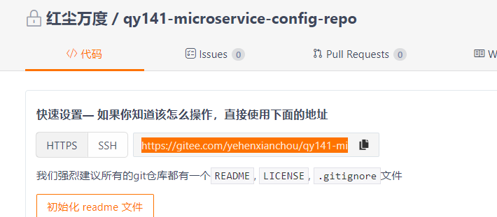 git clone https://gitee.com/yehenxianchou/qy141-microservice-config-repo.git