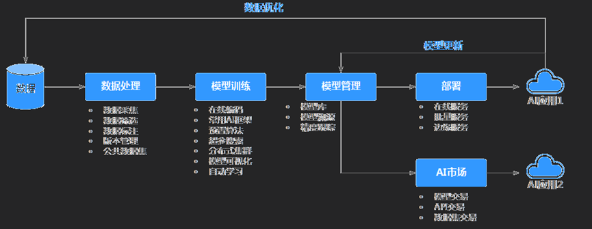 "一站式"是指AI开发的各个环节,包括数据处理、算法开发、模型训练、部署都可以在ModelArts上完成。ModelArts底层支持各种异构计算资源,开发者可以根据需要灵活选择使用,而不需要关心底层的技术。