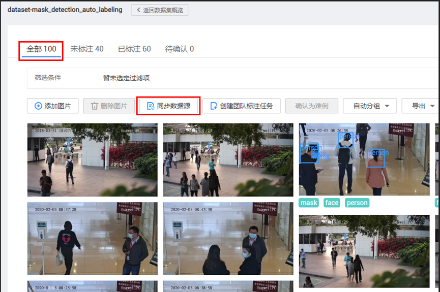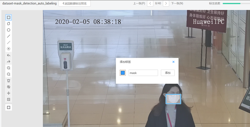 在本案例中,您将使用ModelArts的数据标注工具,标注图片中的行人、脸部和口罩,并体验使用智能数据标注自动批量标注数据。
