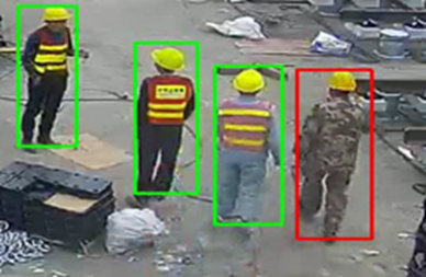 基于工服工帽检测算法,通过工地入口或指定作业区域的摄像头,对人员的安全帽佩戴和反光服穿着情况进行检测,如发现有人员未佩戴安全帽或者未穿反光服时,上报告警信息,并对特定人员的图片进行保存。