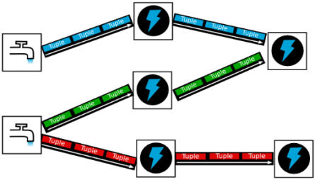 - 从Spout中源源不断传递数据给Bolt、以及上一个Bolt传递数据给下一个Bolt,所形成的这些数据通道即叫做Stream
