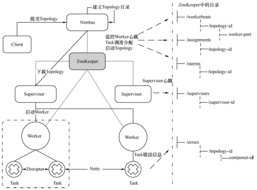 - zookeeper上建立assignments节点,存储task和supervisor中worker的对应关系。