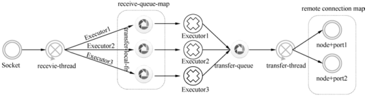 - receive thread负责将每个executor所需要的数据放入对应的receive-queue-map中,然后由executor来获取自己所需要的数据,这个过程通过disruptor进行通信。