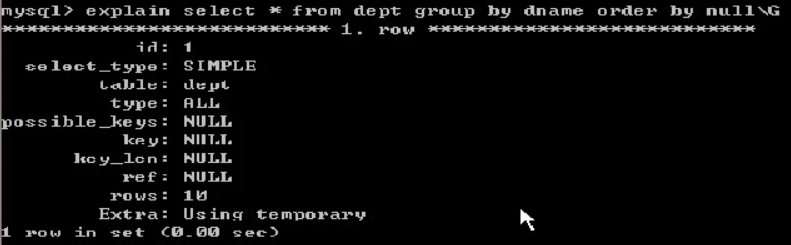 引入的原因group by(它默认会排序)分组后如果不加order by null它会使用到Using filesort