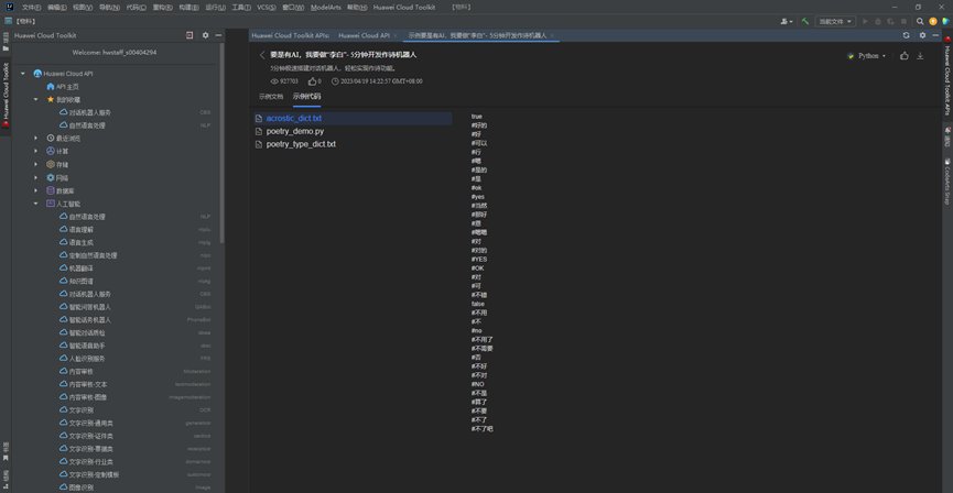 华为云API对话机器人CBS的魅力—要是有AI,我要做“李白”- 5分钟开发作诗机器人