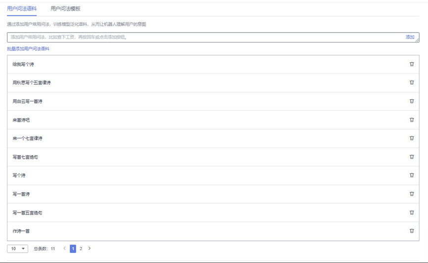 添加用户问法模板