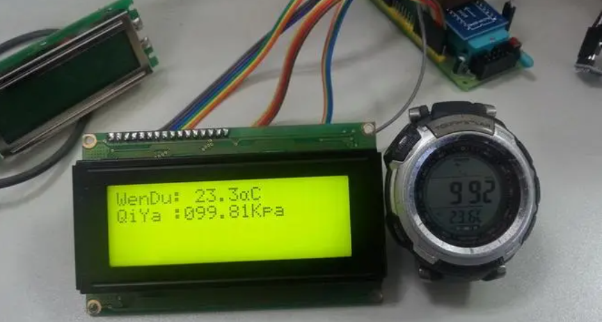 (3)数据处理与显示:对读取到的气压数据进行处理,如单位转换,计算出精确的大气压强值。同时,根据需要,可以通过BMP180模块提供的算法计算气温、海拔高度等信息。将处理后的数据以字符形式显示在LCD1602上。