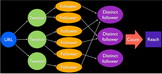 URL的范围是在Twitter上暴露给URL的唯一人数。要计算覆盖面,您需要: