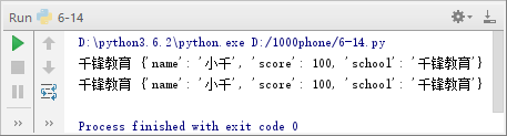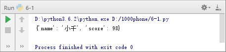 1 d = dict(name = '小千', score = 98)