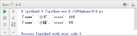 {'name': '小锋', 'score1': 98.5, 'score2': 98.5}