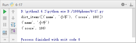 在例6-1中,第1行定义一个列表,列表中的每个元素为元组。第2行通过dict()将列表转换为字典并赋值给d。