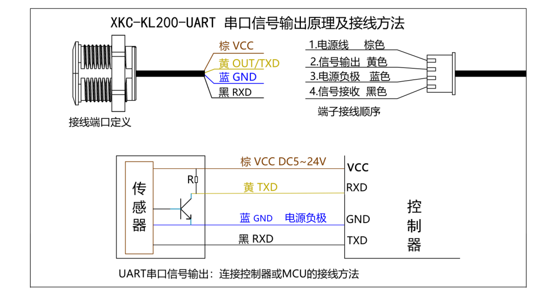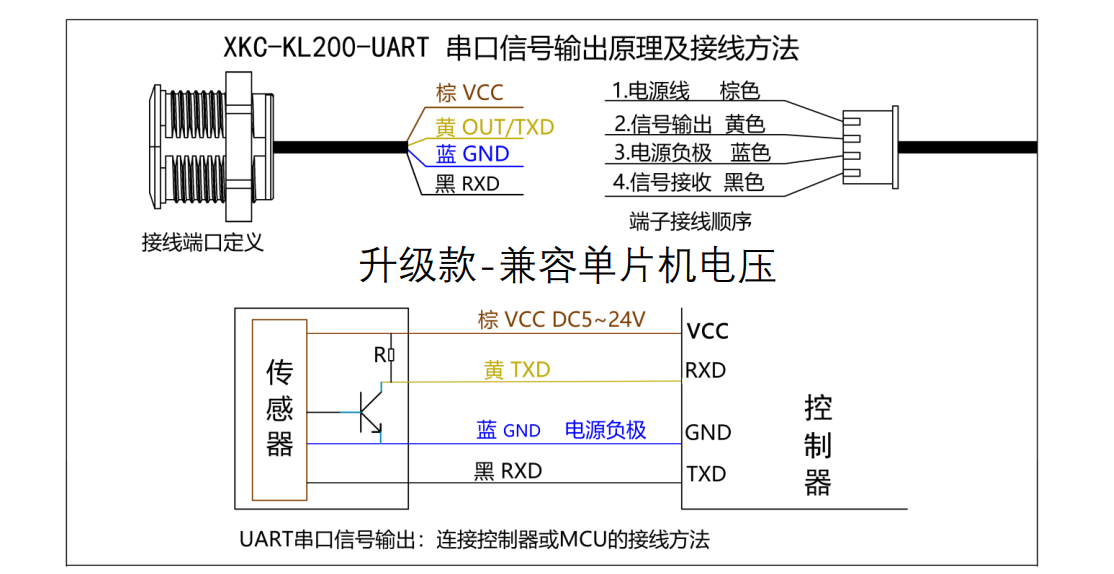 XKC-KL200 是一款智能非接触式开关、带有 UART 串口,高低电平或 NPN 驱动输出的激光测距传感器。