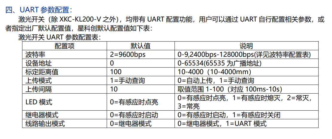 三、XKC-KL200激光测距模块