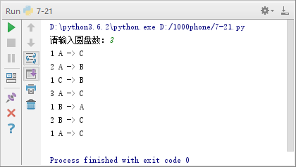 在例7-21中,使用函数的递归调用解决汉诺塔问题,使用递归需抓住两个关键点,一是递归的结束条件,二是递归的规律。